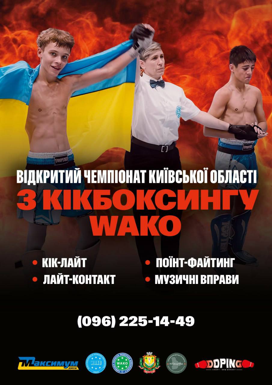 Відкритий Чемпіонат Київської області з кікбоксингу WAKO Кік-Лайт, лайт-контакт, поїнт-файтинг, музичні вправи